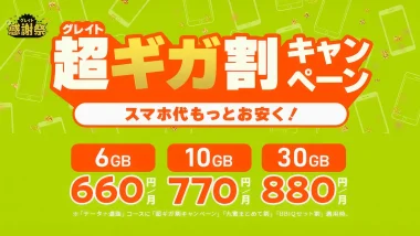 QTモバイル、6GB/10GB/30GBプラン申し込みで最大6ヶ月間割引の超ギガ割キャンペーン開始