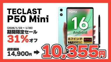 【広告】TECLASTの8.7インチタブレットTECLAST P50 Miniが31%オフの1万355円!