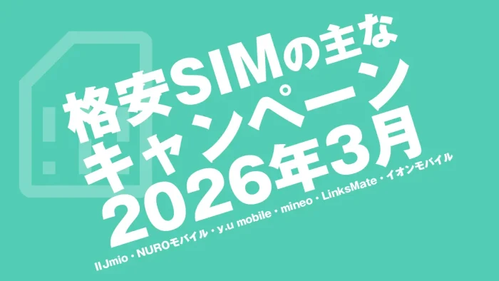 格安SIMの主なキャンペーンまとめ【2026年3月】MVNO編:IIJmioやNUROモバイル、mineoなど