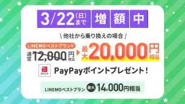 LINEMO、最大2万円相当もらえるPayPay増額キャンペーン開始!3月22日まで【LINEMO週穫祭】