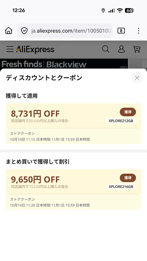 購入する際は、ストアクーポンの適用を忘れずに。8,000円以上安くなるので、適用するのとしないのとではかなり変わりますよ。