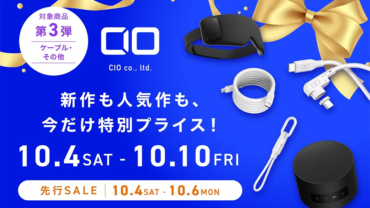 CIOは9月29日、Amazonにて10月4日から始まるプライム感謝祭および先行セールにおけるセール対象製品 第3弾を発表しました。今回はケーブルやあったかガジェットのセール価格となります。