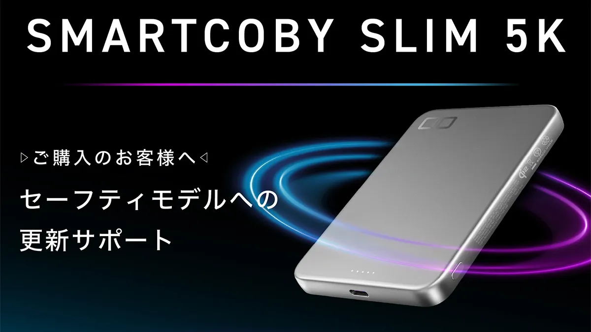 CIOは9月29日より、同社のSMARTCOBY SLIM 5Kを購入した方に対し、より発熱温度を抑制した「セーフティモデル版」へと無償で更新できるサービスを開始しました。送料のみの負担で交換できます。