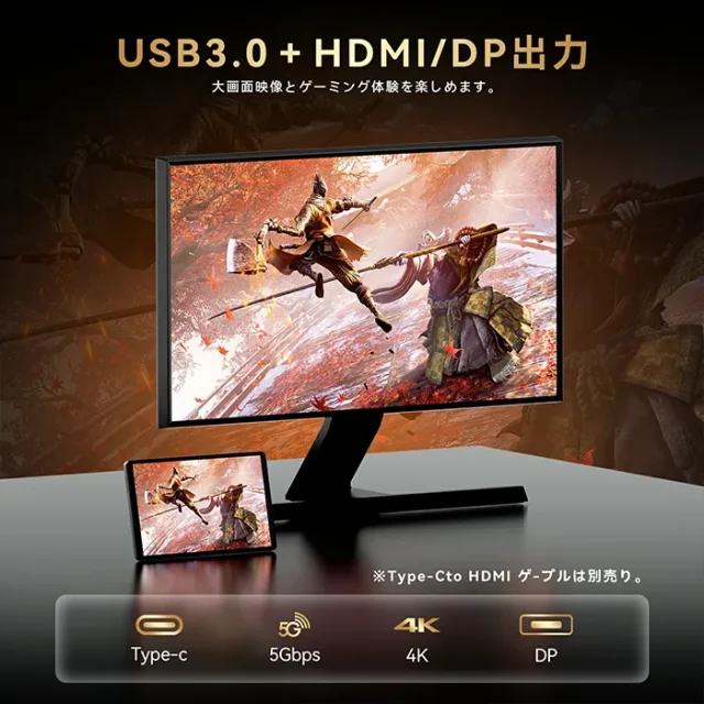 この他、CtoHDMIのケーブルで外部出力も可能なようです。遅延をほぼ感じずに大画面でゲームをプレイするにはもってこいですね。