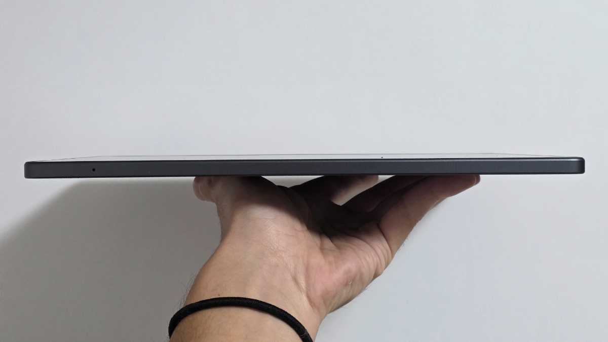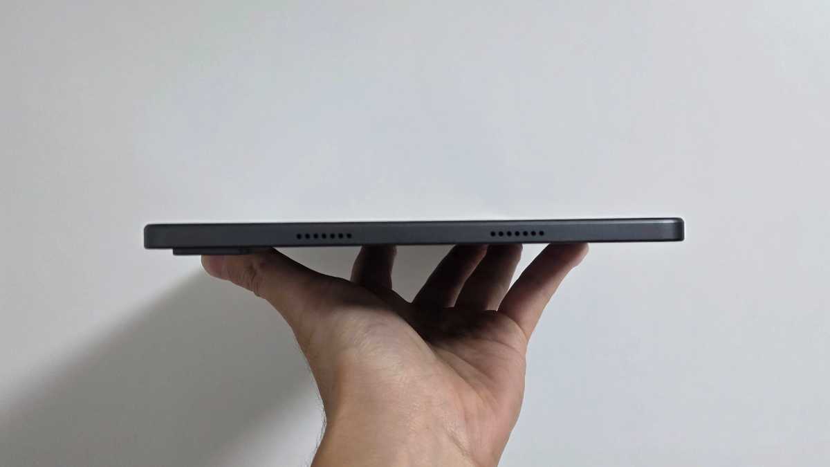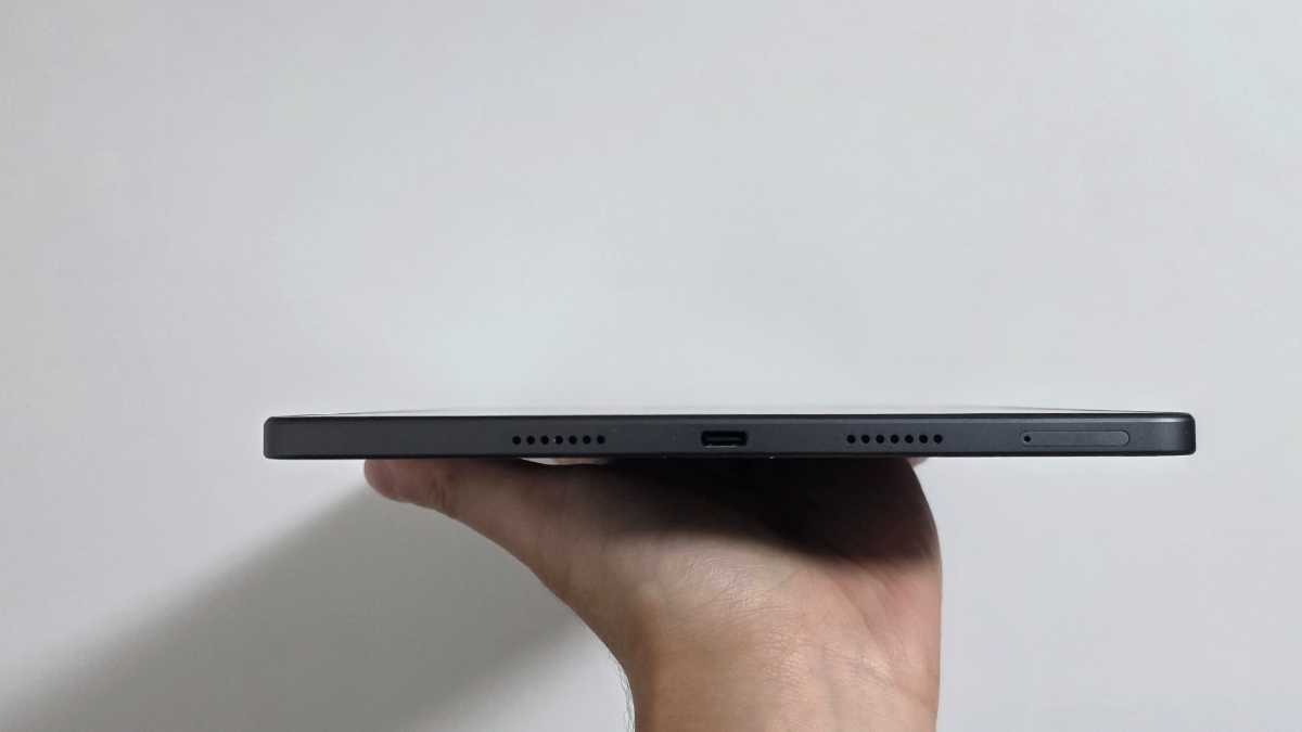 本体上部にはスピーカー穴×2、下部にもスピーカー穴が×2、Type-Cポート×1、microSDカードスロット(最大1TB)。上下を合わせてクアッドスピーカー仕様です。