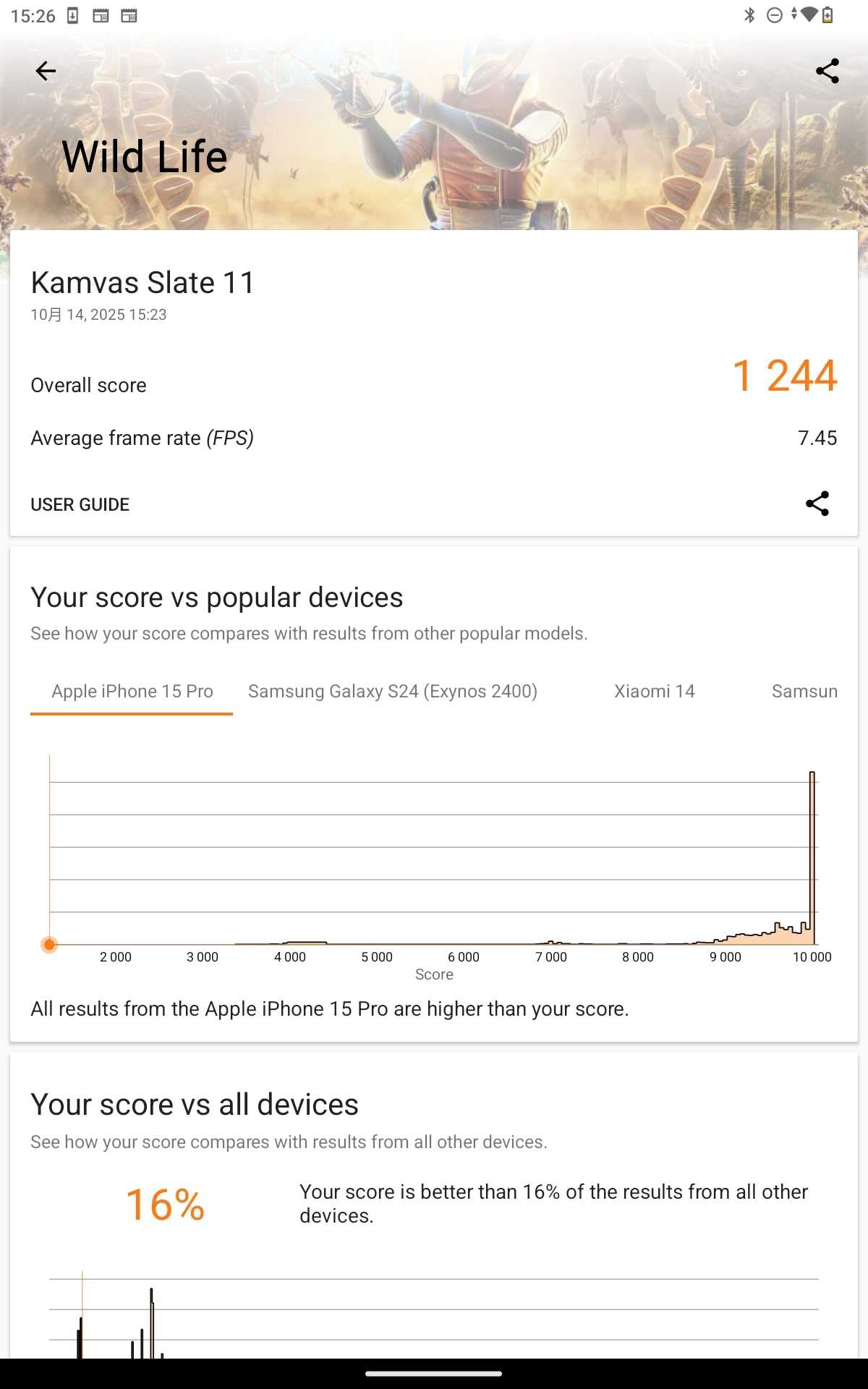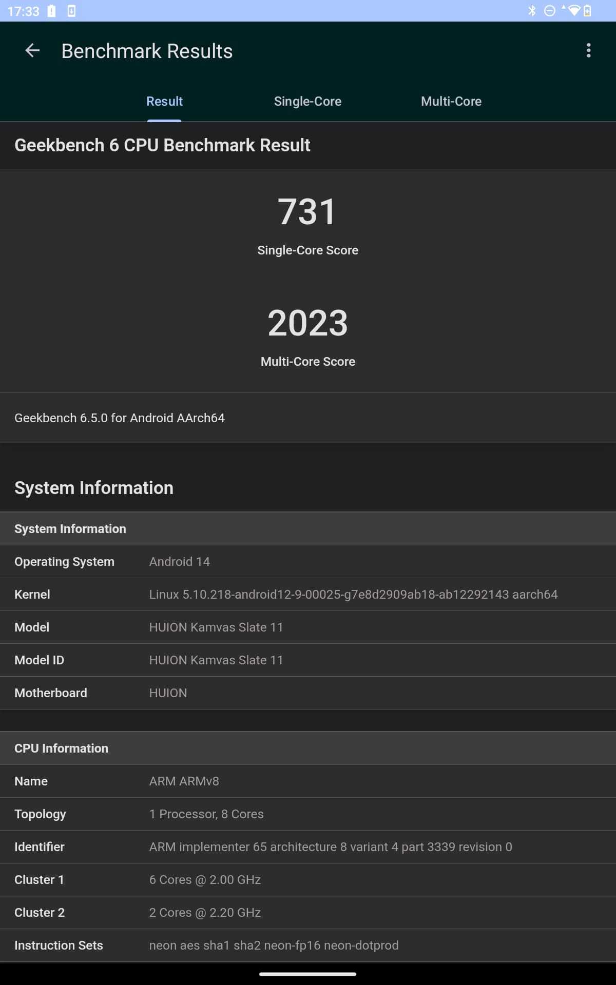 ベンチマークアプリを用いて端末の性能を測定してみました。使用アプリはグラフィック性能を測定する『3D Mark』とCPU性能を測定する『Geek Bench6』です。3D MarkのFirestrikeでは1244点、Geek Bench6ではSingelが731点で、Multiが2023点でした。この結果は、ブラウジングやSNS、動画鑑賞などの基本的な用途であれば不便なく使用できるといったものです。