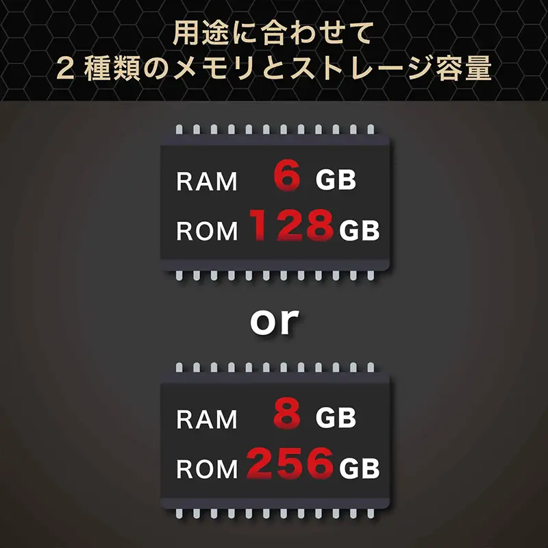 | RAMとストレージ | 6GB/128GB、8GB/256GB | ||||||||