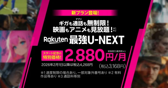 また、2026年1月31日までに「Rakuten最強U-NEXT」を契約すると、期間中「Rakuten最強U-NEXT」が月額3,278円で利用できる「Rakuten最強U-NEXTリリース記念」キャンペーンも実施されます。