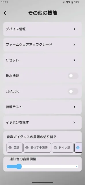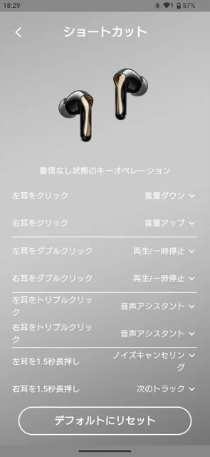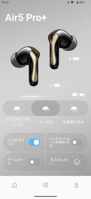 ノイキャンの切り替えやゲームモードはアプリで切り替えられます。(イヤホン本体でも可能)また、イヤホンのタッチコントロールを一時的に無効化できます。