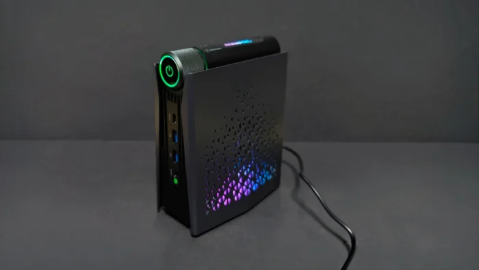 本体のLEDライトは両側面についています。4つのRGB LEDライトがついていて、ACEMAGICの英語版サイトからダウンロードできるユーティリティソフトを使うことで消灯させることもできます。