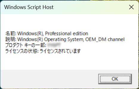 Beelink EQi12は、Windows 11 Proを搭載しています。ライセンスは、OEM版(OEM_DM channel)となっていました。