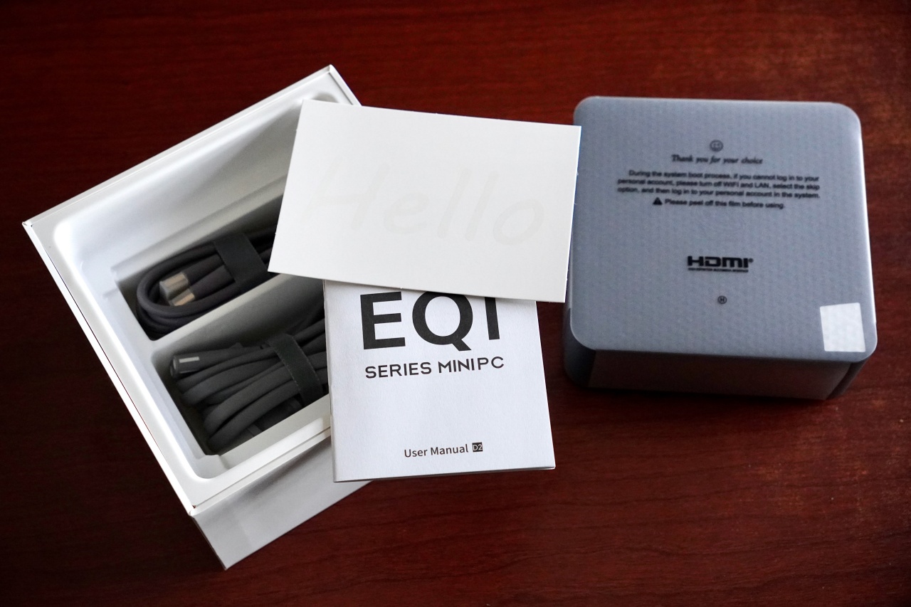 開封するとBeelink EQi12本体と対面します。この下に説明書や電源ケーブル、HDMIケーブルが収められています。
