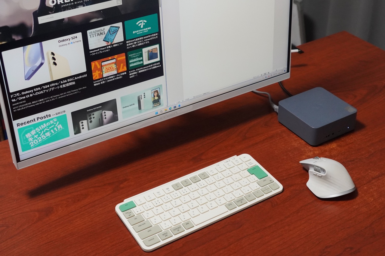 Beelink EQi12は、記事執筆時点で479ドル(約73,783円)で購入できます。今回レビューしたBeelink EQi12は、RAM32GB/1TB SSDのスペックのためやや高めですが、RAM16GB/500GBの構成や別のCPUなら5万円以下で購入できるモデルも用意されています。ケーブル1本で電源供給でき、排熱やRAMにも余裕があって、好きなモニターを自由に選べるという点で、同じCPUを搭載したノートPCよりも作業効率の面で有利です。コンパクトに作業環境を構築して快適に作業したい人には、おすすめできるミニPCと感じました。