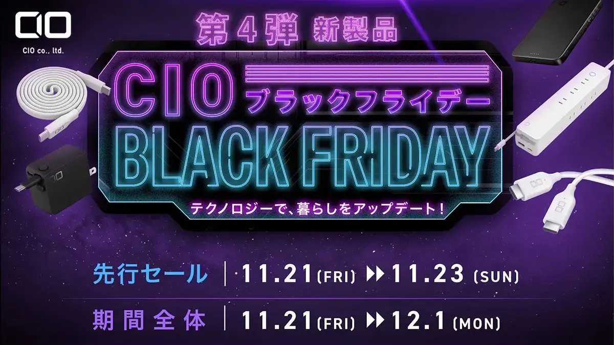 CIOは、Amazonにて11月24日から始まるプライム感謝祭および11月21日からの先行セールにおけるセール対象製品 第4弾を発表しました。今回は新製品のセール対象商品のセール価格となります。