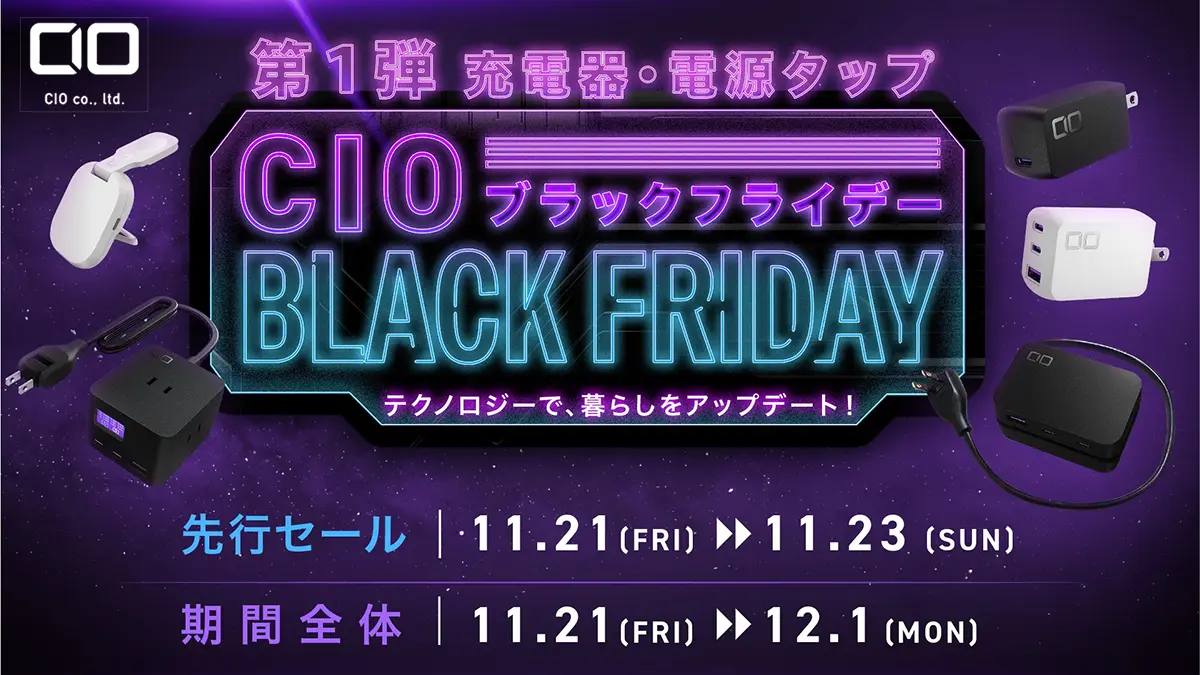 CIOは、Amazonにて11月24日から始まるプライム感謝祭および11月21日からの先行セールにおけるセール対象製品 第1弾を発表しました。今回は人気充電器、電源タップの注目製品のセール価格となります。