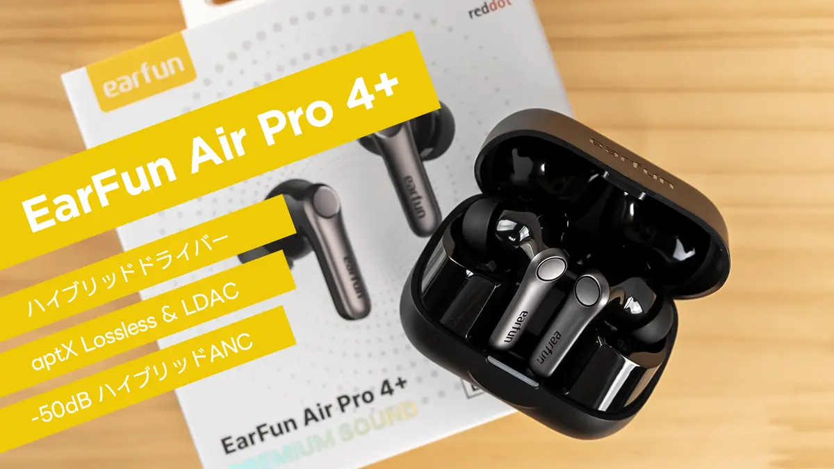 EarFunより、独自のオフアクシス配置音響構造でハイブリッドドライバーを配置した完全ワイヤレスイヤホン「EarFun Air Pro 4+」をレビュー用に提供していただきました。