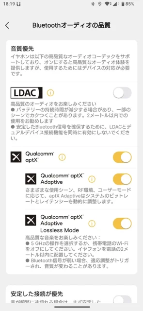 - LDACやaptX Adaptiveなど高音質コーデックに対応