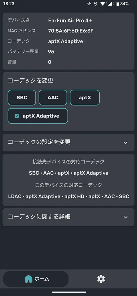 | 対応コーデック | SBC, AAC, aptX, aptX Adaptive, LDAC |