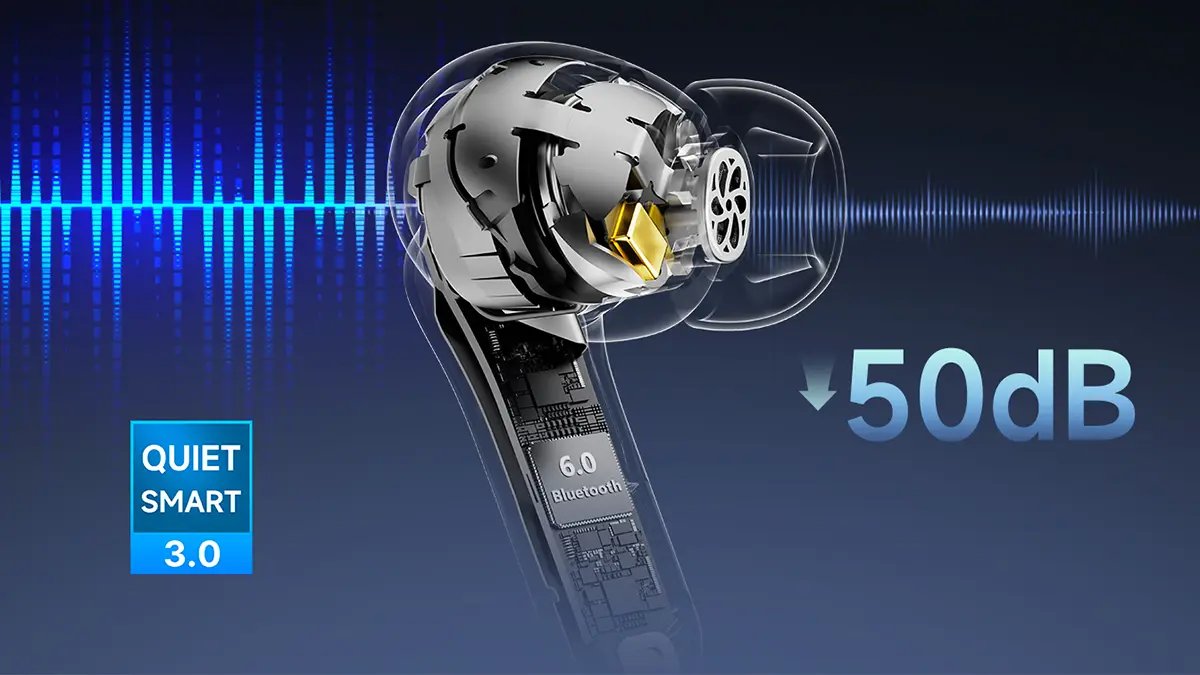 EarFun Air Pro 4iはEarFun初のハイブリッドドライバー搭載の完全ワイヤレスイヤホンです。独自のアクティブノイズキャンセリング技術「QuietSmart 3.0」による最大50dBのノイズ低減、高音質コーデックのサポートなど、数多くの先端技術を搭載し、さらにマルチポイント接続がLDACコーデックと併用可能など、使い勝手も増しています。