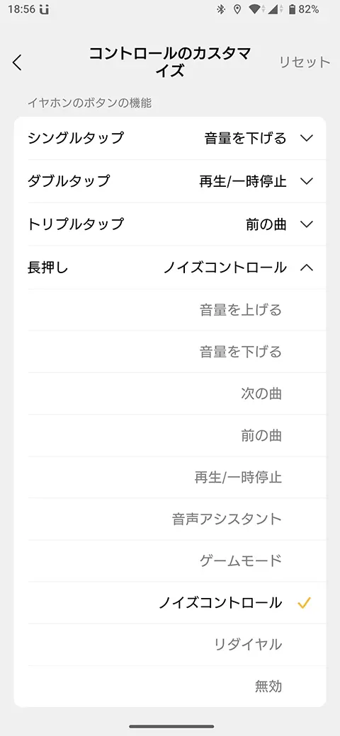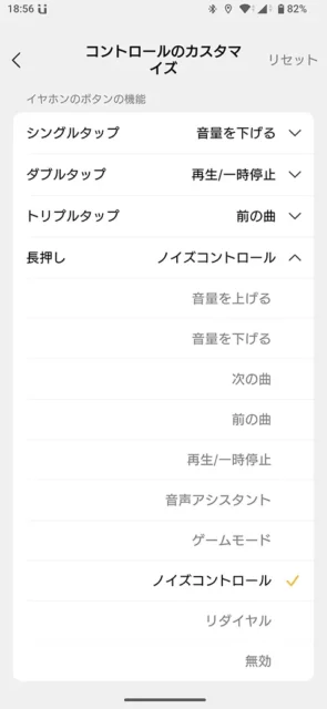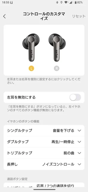 EarFun Air Pro 4+の操作はタッチセンサー式で、1回タップ、2回タップ、3回タップ、長押しで片耳ずつ機能が割り当てられています。この機能割当はアプリから自分でカスタマイズできます。