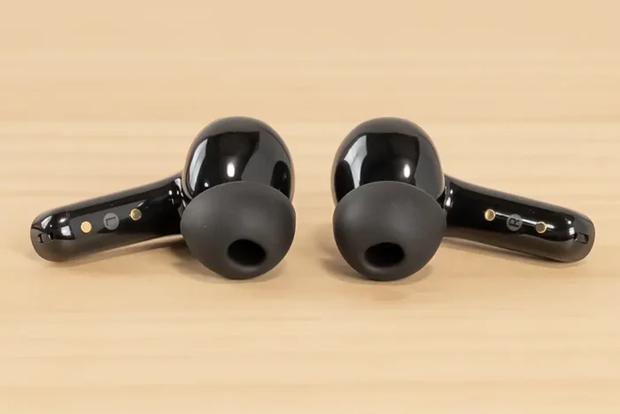 イヤホン自体の見た目はAir Pro 4とほぼ同じで、耳に隠れる部分はプラスチッキーで外から見える部分は非光沢になっており、質感は悪くありません。