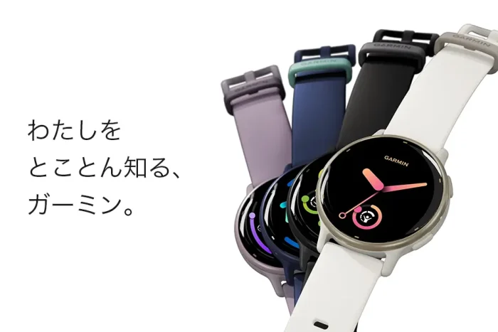 vivoactive 5はガーミンのフィットネス向けスマートウォッチです。1.2インチのAMOLEDディスプレイを搭載し、1階の充電でスマートウォッチモードなら11日間、GPSモードなら約21時間の稼働が可能です。