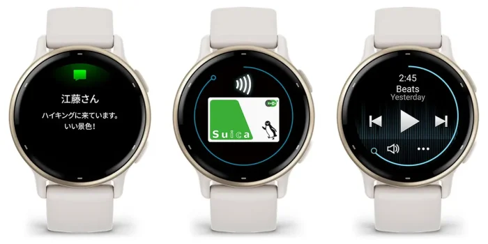 もちろん、スマートウォッチとしてスマホに届いた通知を表示したり音楽再生をコントロールできますし、Suicaにも対応しています。
