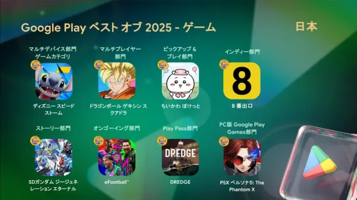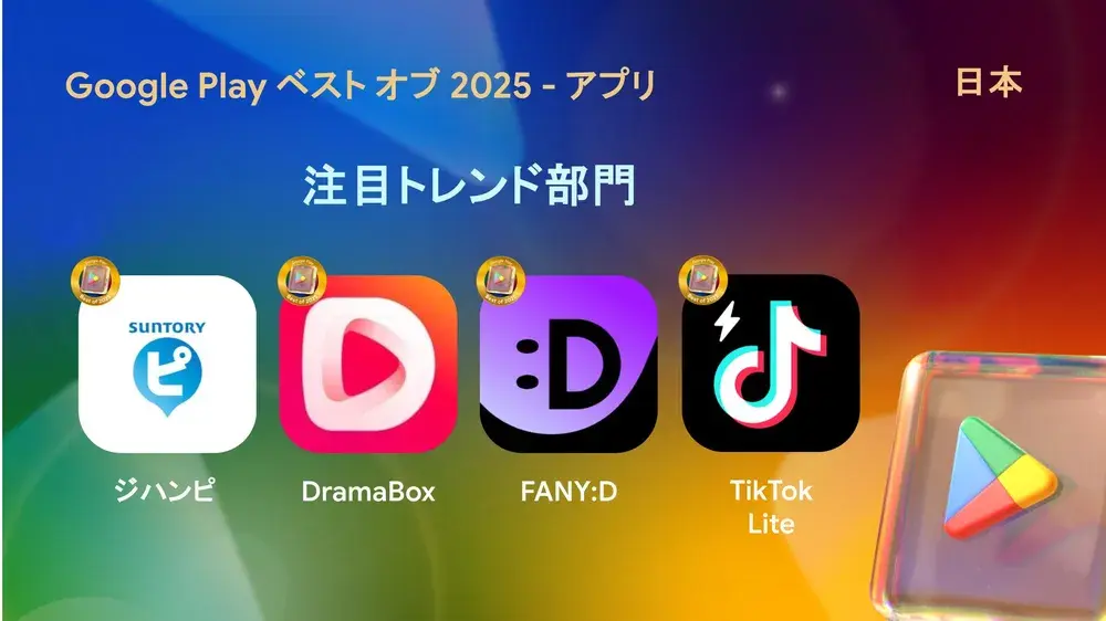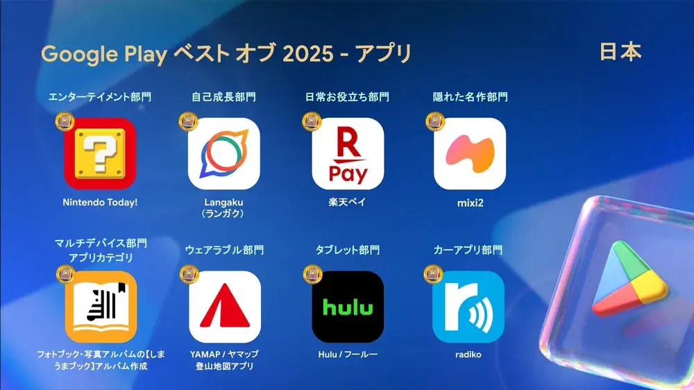Googleは11月19日、2025年に日本で人気を集めたGoogle Playのコンテンツを紹介する「Google Play ベスト オブ 2025」の受賞作品を発表しました。