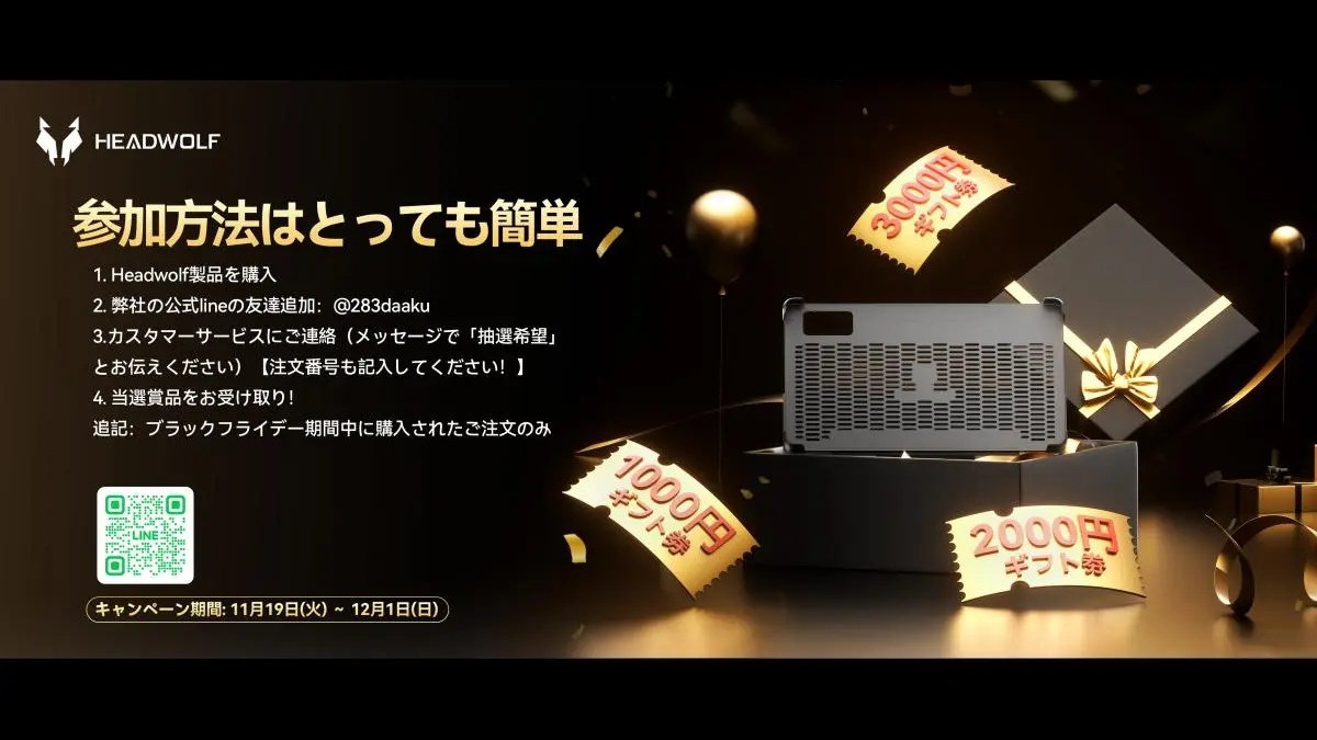 ブラックフライデーキャンペーンは、期間内に新規購入した方が全員参加できる抽選プレゼントです。当たる賞品は以下のラインナップです。