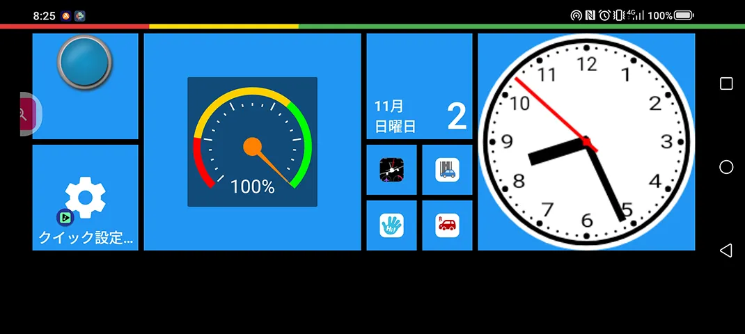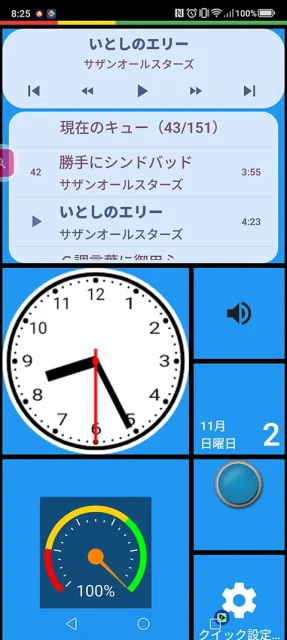 音楽プレーヤー:Musicolet。 時計:Simple アナログ時計 [秒針対応ウィジェット]。 音量調整:Volume Control Widget。 バッテリーメーター:Gauge Battery Widget。PowerLine: スマート指標。 動作自動化:MacroDroid – デバイス自動化。 |