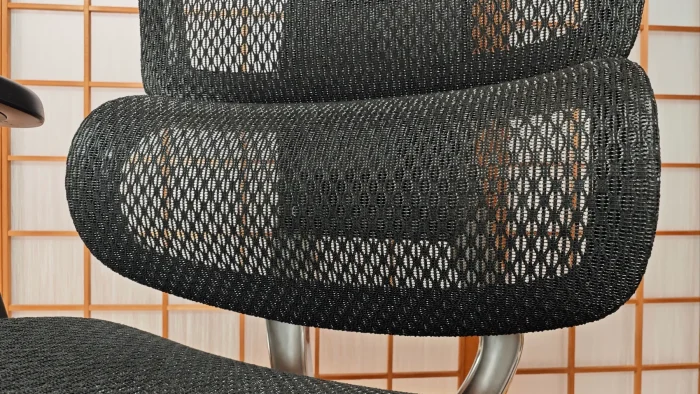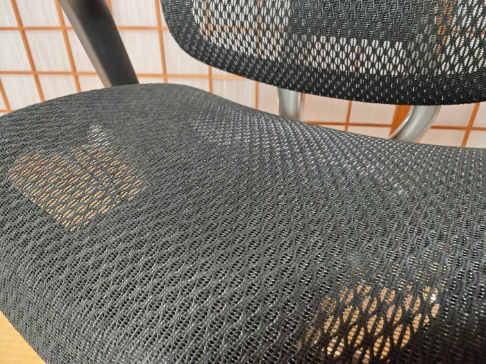 座面や背もたれなどはメッシュ素材となっており、通気性は抜群です。最初はメッシュ素材は硬そうだなと思っていたのですが、実際座ってみるとあまり気になりませんでした。暑くなければクッションを敷いてもいいとは思いますが、「メッシュ素材が硬そう」と敬遠する必要はないと思います。