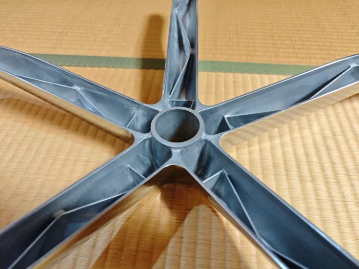 こだわりだというのがこの脚部分。アルミダイカストで、ネジなどを使わないため剛性が高いのだそうです。
