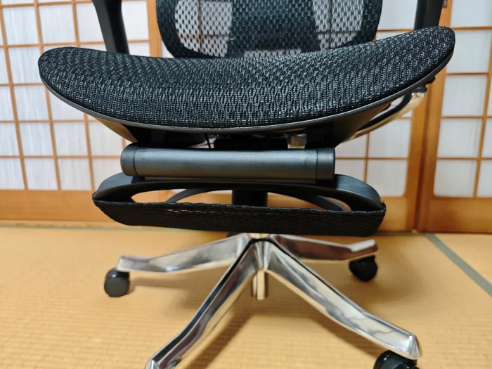 脚のある方向に20cmくらい引き出すことができます。私の身体が大きすぎるのか、フットレストに脚を乗せるとちょっとしなるのが少し怖かったです。乗せたあと動かさなければそこからしなったりはしないので、別に壊れないとは思うのですが、心理的にはちょっとした怖さがありました。