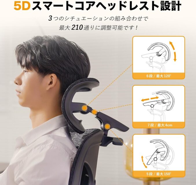 ヘッドレストもかなり柔軟に調整でき、角度や高さ、前後位置などが調整できます。