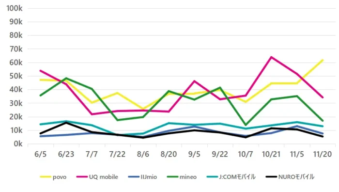 うーん…。測定している地域がau弱いとはいえ、サブブランド系なのだからもう少し頑張ってほしいところ。povoは使い方との相性が大事なので、そのあたりも考えて使いたいですね。