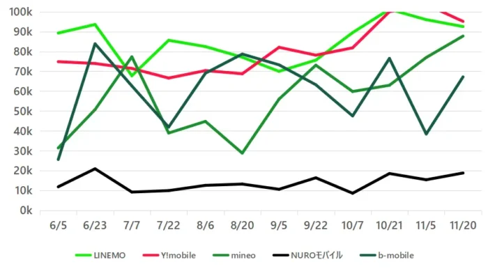 - 格安SIMの速度測定 2024年11月後半:全体的に十分な速度が出ていて悪くない
