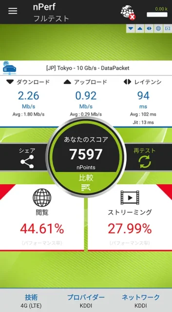 なお、このnPerfでもその値が絶対なわけではないので、適当に考えていたほうが良いとは思います。YouTubeが読み込めるかどうかでもだいぶポイント変わりそうですしね。