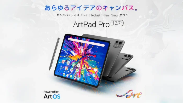ArtPad Proは4:3の12.7インチディスプレイを持ったAndroidタブレットです。4096段階筆圧の専用ペンT-Penが付属しカスタマイズされたArtOSによってペン入力やイラスト作成に向いたタブレットとなっています。