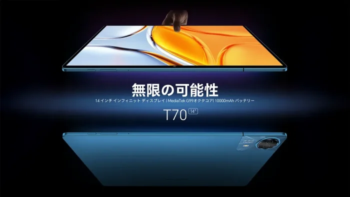 Teclast T70は14インチ(1920×1200)という巨大なディスプレイを持ったタブレットです。SoCにはHelio G99を搭載し8GBのRAMと256GBのストレージ、10000mAhのバッテリーを搭載します。