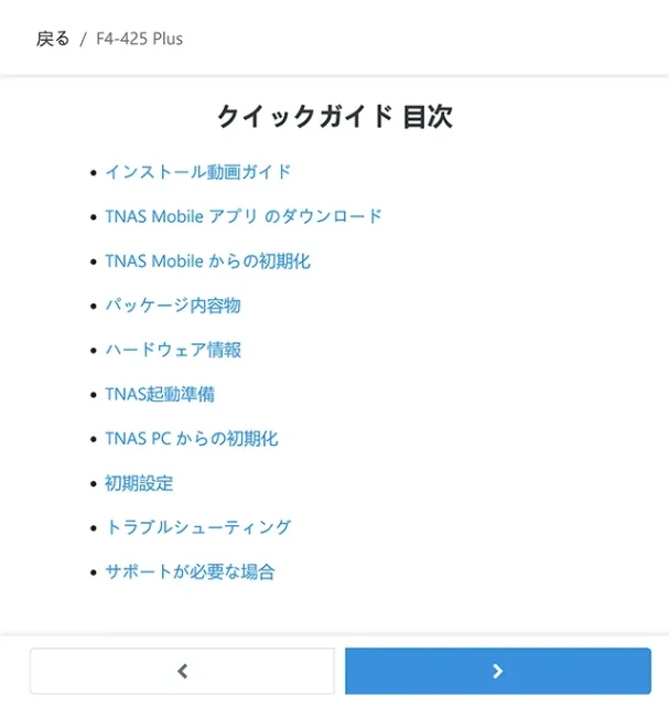 TERRAMASTERのNASはウェブにインストールガイドがあります。F4-425 Plusは以下のページになります。