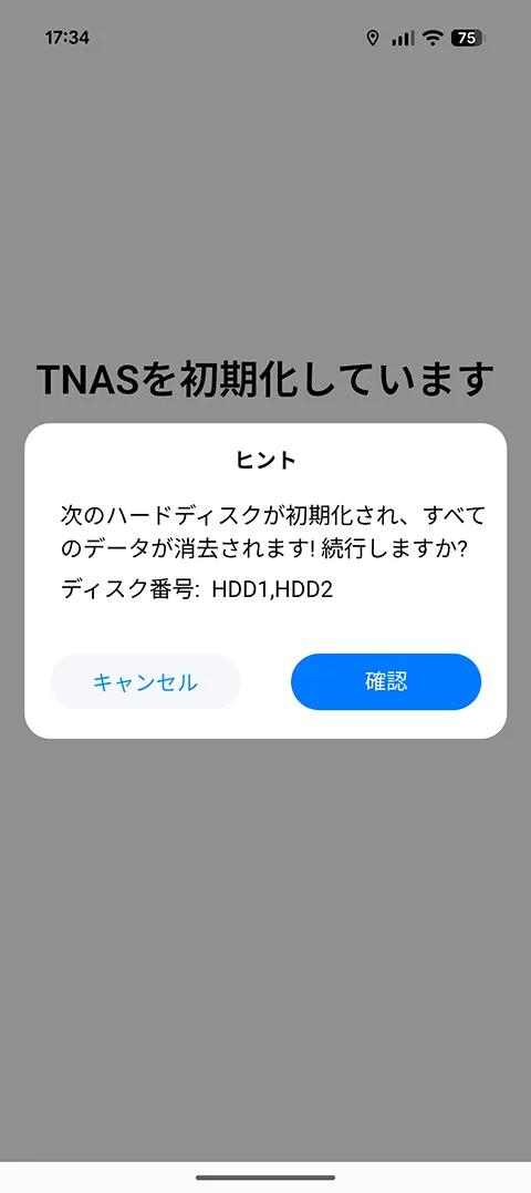 …このあたりで気づいたのですが、そういえばRAID構成の選択がありませんでした。F4-425 PlusはRAID 0/1/5/6/10とTRAIDが利用できるはずですが、アプリでは自動的にTRAIDで構成されていました。