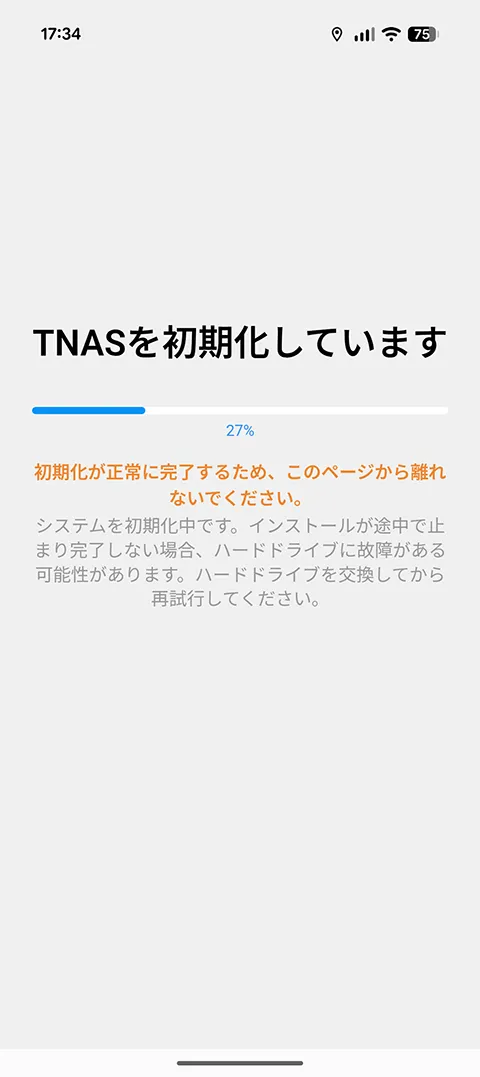 HDDの初期化はだいたい5分くらいかかりました。これは装着したHDDにもよると思います。