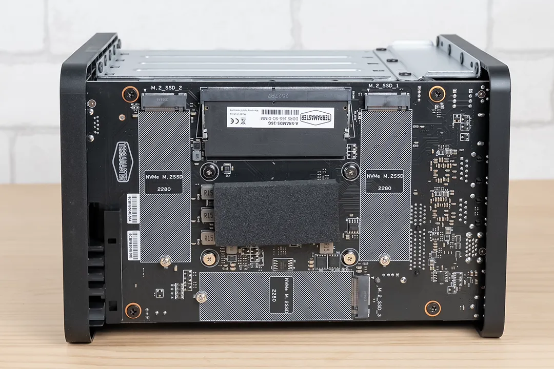 HDDベイが4つあり、さらにM.2 SSDも3つ使えます。M.2 SSDはHDDと同じようにストレージとしても利用できますし、キャッシュ用としても利用可能です。コスト的に考えればキャッシュ用として使ったほうが良いでしょうか。スマホで初期設定したらいつの間にかTRAIDになっていたのは驚きましたが、初心者的にはこの方がありがたいのかもしれません。