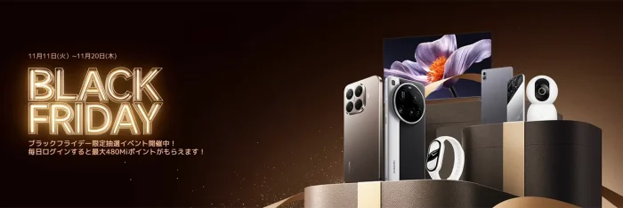 なお、Xiaomi公式サイトでは11月11日よりログインボーナスなどの限定イベントも開催されています。
