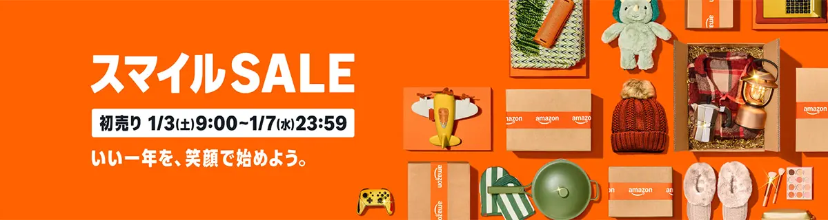 Amazonの初売り「Amazon スマイルSALE 初売り」が2026年1月3日9時から1月7日23時59分まで開催されます。