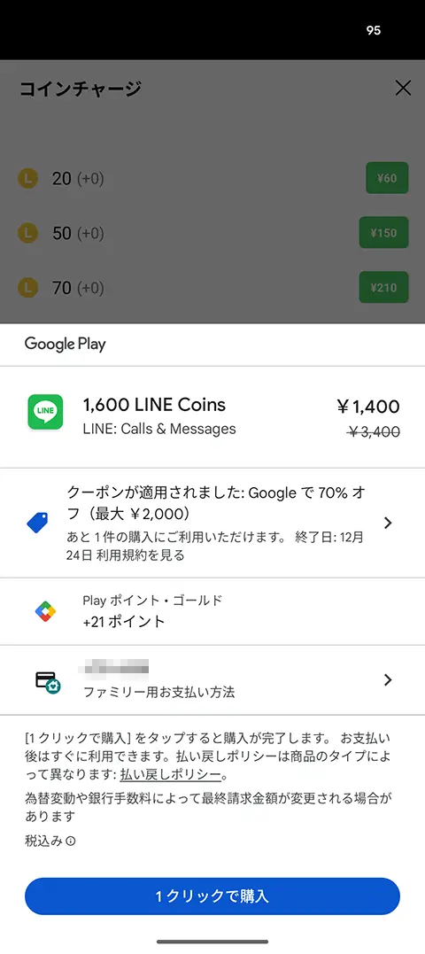 LINEなど対象アプリのアプリ内アイテムが70%オフ(選ばれた一部の方のみが対象)