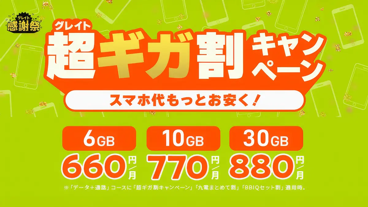 QTモバイル、6GB/10GB/30GBプラン申し込みで最大6ヶ月間割引の超ギガ割キャンペーン開始