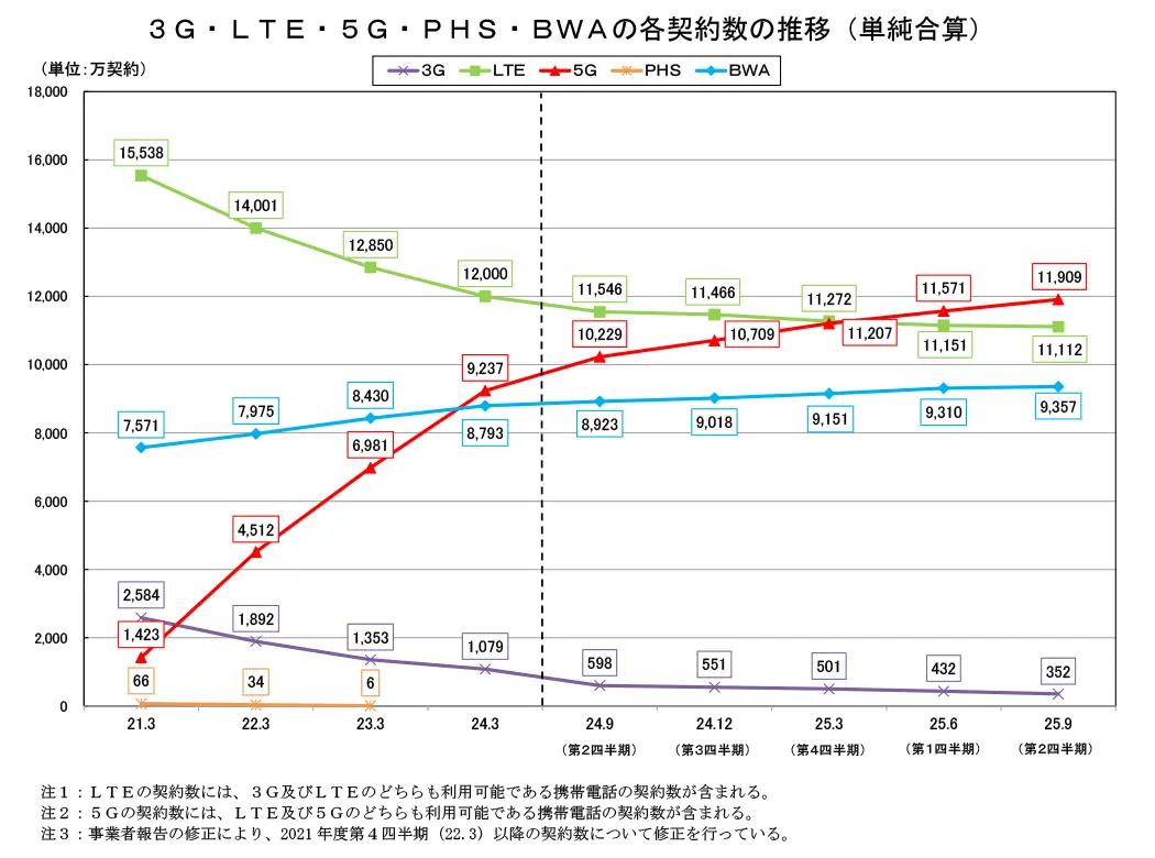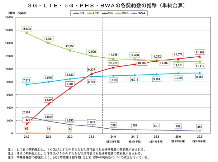 - 総務省 2025年度Q1(6月末)電気通信サービスのデータ:5G契約数がLTE契約数を超える – OREFOLDER