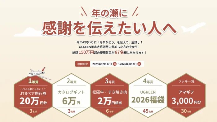 UGREEN、2026年の福袋を販売!キャンペーンも開催中!