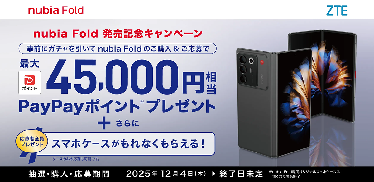 ワイモバイル、初のFold型折りたたみスマホ「nubia Fold」を12月4日発売!2年返却6万7,680円から